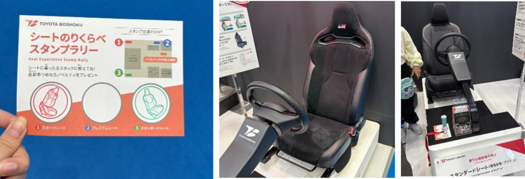 また、ブース内では「シートのりくらべスタンプラリー」が実施されており、スポーツシート、スタンダードシート、プレミアムシートの3種類を実際に座って体験してきました。
