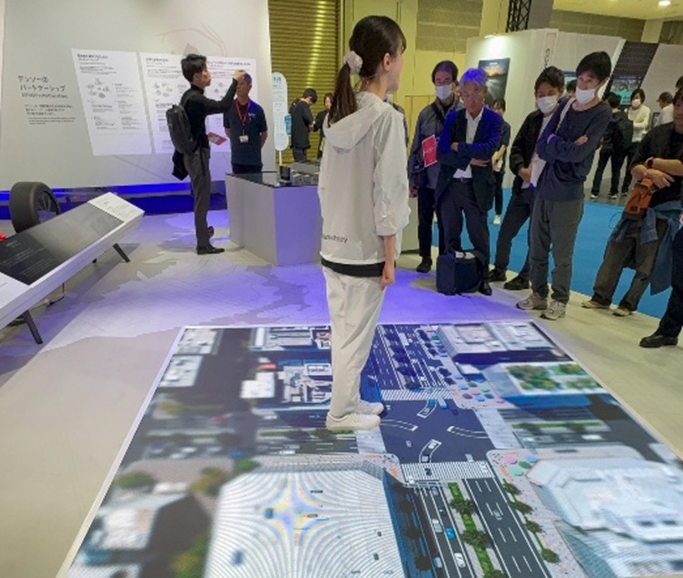 ブース内には信号機や横断歩道が設置されており、まるで街中にいるかのような空間。地面には映像が投影され、空から街を見下ろしているような感覚を味わえる、ユニークで没入感のある体験ができました。