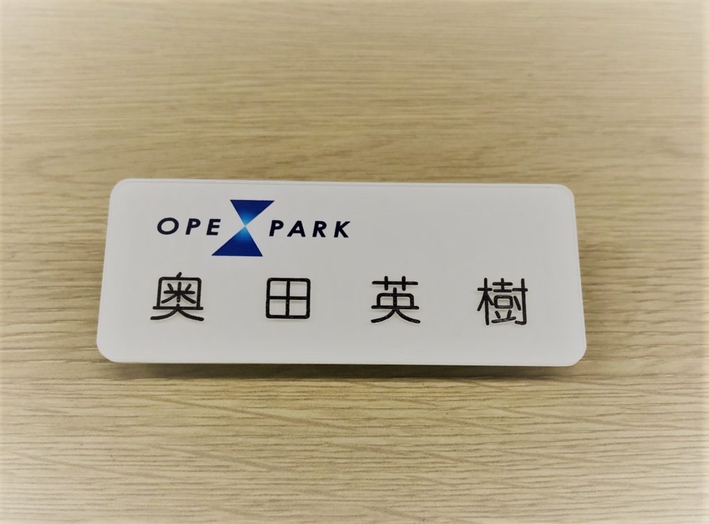 今回、社員様用のロゴマーク入りネームプレートを制作いたしました。ロゴマークは4色フルカラーUV印刷、お名前の部分は彫刻仕上げです。透明アクリルを上から重ねることで文字に立体感が感じられる仕上がりとなっています。