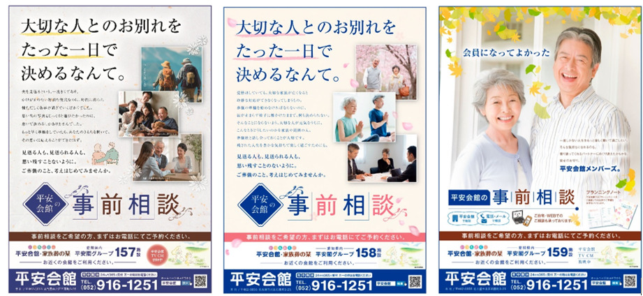 平安会館各斎場統一新聞折込チラシのデザイン/印刷/折込手配のお手伝いをさせていただきました。2025年は1月、4月、7月、10月の折込チラシを担当させていただきました。